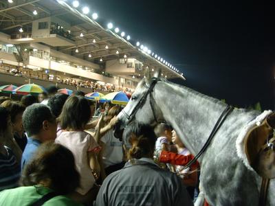 旭川競馬場ではすっかり恒例となっている誘導馬とお客さんとの