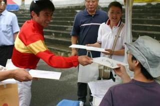 井上騎手は当選者に1人1人サイン色紙や景品をプレゼントし、受け取ったファンは大感激でした。