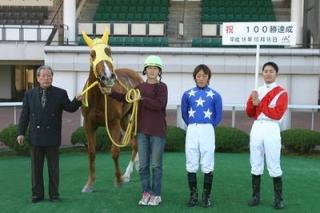 三井騎手は滋賀県出身、足利競馬場でデビューし、平成11年4月21日に初勝利。平成17年10月4日ホッカイドウ競馬に移籍後、265戦目(17勝目)で通算100勝を成し遂げました。