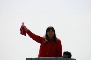 開幕式では、山本副知事、橋本参議院議員、酒井新ひだか町長が挨拶を行った後、今年新しく調教師として開業した岡島調教師と田中調教師に一般ファンから花束が贈られました。