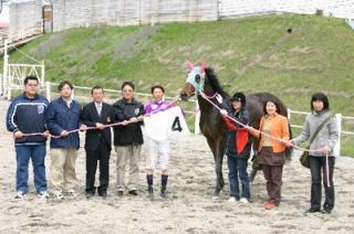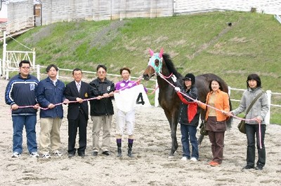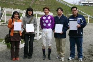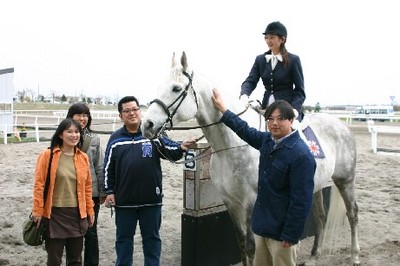 5月10日、第4回「優勝馬との写真撮影体験」が門別競馬場で行われ、多数の応募者の中から抽選で選ばれた一般ファン4名が写真撮影を行いました。