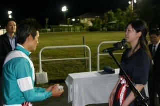 中:勝利騎手にトロフィーを贈呈