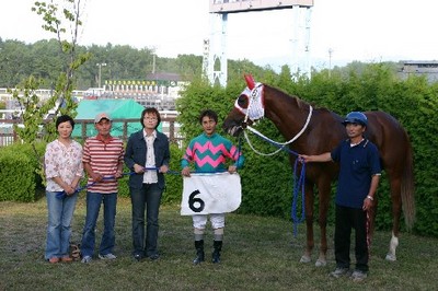 7月19日、旭川競馬場で、第12回「優勝馬との写真撮影体験」が行われ、旭川市の一般ファン3名が写真撮影を行いました。
