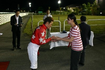 中:五十嵐騎手へトロフィーを贈呈