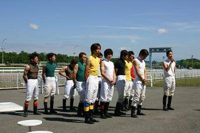 この他、能検終了後に駆け付けてくれた多数の騎手の中から、佐々木国明騎手部会会長がファンへの挨拶を行い、その後、騎手とともに記念撮影やサイン会などが行われました。
