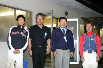 参加者は、実況放送室で古川アナウンサーと競馬ブックの高倉記者が担当したパドック解説と太田アナウンサーの実況放送を見学し、その後、検量室では秋田騎手、岩橋騎手、川本騎手からサインをもらい記念撮影をしました。