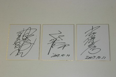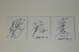 写真:左…下條騎手サイン、中…福永騎手サイン、右…小林騎手サイン