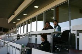 3名は競馬場馬主室に入り、3階馬主専用スタンドから第5・6レースを観戦し、応援している馬が勝利すると歓声をあげていました。