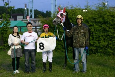 参加者は、第7レースの優勝馬ゴッドビラブドミー、沼澤英知騎手らと口取り写真に参加しました。