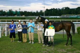 7月24日、旭川競馬場で「第9回 優勝馬との写真撮影体験」が行われ、美瑛町と東京都から計4名のファンが写真撮影を行いました。