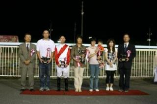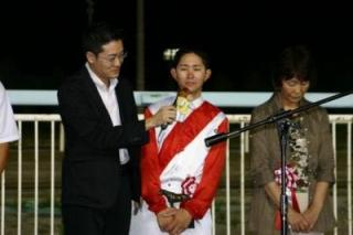 中:優勝インタビューを受ける佐々木国明騎手