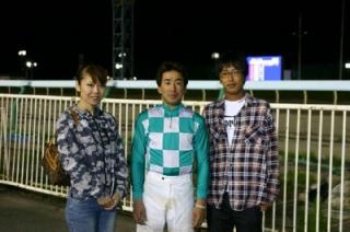 第26回 スタリオン競走表彰プレゼンター 2008.08.19 8月19日、旭川競馬場で第26回「スタリオン競走表彰プレゼンター」が行われました。 第25回目は「ボーンキング賞」で、旭川市のファンがプレゼンターを務め、優勝馬ディーズエトワール号の松本隆宏調教師(馬主代理)と宮崎光行騎手にそれぞれ記念品を贈呈しました。 また、プレゼンターには、(株)サラブレッド・ブリーダーズ・クラブから提供された『スタリオンブック』等が贈られました。 写真 上:優勝馬ディーズエトワール号と口取り写真 中:宮崎光行騎手記念品贈呈 下:宮崎光行騎手と記念写真