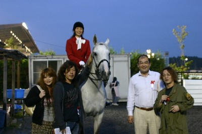 4名は実況放送室で古川アナウンサーと競馬ブックの高倉記者が担当した第7レースのパドック解説を観戦、その後、検量室では誘導馬や笹木美典騎手、岩橋勇二騎手らと記念撮影をしました。