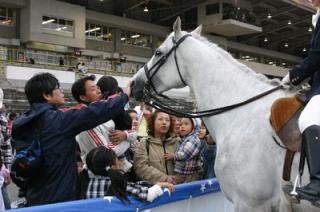 浦河町荻伏地区で生産された名馬のクオカードなどが当たる抽選会や、『家族で楽しむ秋のケイバ講座』なども行われ、普段立ち入ることの出来ないバックヤード見学、誘導馬とのふれあいを楽しんだほか、第10Rのスタリオン表彰プレゼンターも体験しました。