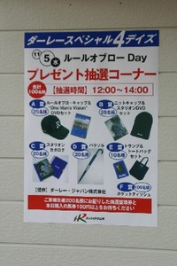 11月5日、門別競馬場でスタリオン競走「ルールオブロー賞」が行われ、レースを記念してダーレー・ジャパン(株)提供のオリジナルグッズ抽選会が行われました。