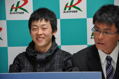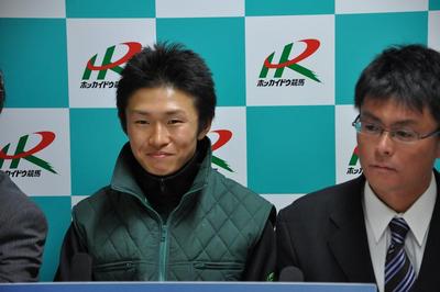 本日の第9レース平取町長杯平取義経特別、第10レースストーミングホーム賞のパドック解説にJRA騎手丸田 恭介 (まるたきょうすけ)騎手と荻野 琢真 (おぎの たくま)騎手がスペシャルゲストとして出演してくれました。第9レースに出演した丸田恭介騎手には、地元が旭川市ということで、騎手デビュー前に旭川競馬場で観戦した時のエピソードやリニューアルとなった門別競馬場の感想について話していただきました。続く第10レースに出演した荻野琢真騎手には、今年の日経新春杯(GⅡ)をテイエムプリキュア号で優勝した時のことなどを話していただきました。