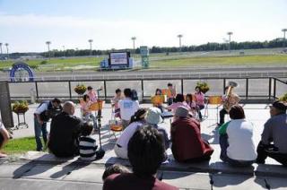 秋のケイバまつり2日目は、北海道富川高等学校ブラスバンド部の演奏会でスタートし、多くのファンの方々にご入場いただきました。とねっこ広場では、豚汁無料サービスが先着300名にプレゼントされたほか、昨日に引き続き、日高物産市・後志フルーツフェア(提供:日高町・日高支庁・後志支庁)、日高ウマいもの村(提供:JA門別・石崎水産)、日高名物コーナー(日高商工会・ホッカイドウ競馬を応援する会)の開催や小学生以下を対象としたポニー体験乗馬、ちびっこお楽しみ縁日などさまざまなイベントが行われました。明日は、秋のケイバまつり最終日となります。ダーレースペシャルサンクスデーとして、ダーレーグッズが当たる抽選会を実施しますので、ぜひご来場下さい。