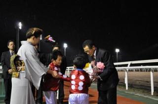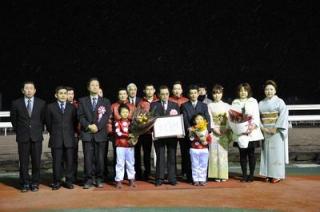 11月19日(木)、第6レース終了後に、今年の開催をもって勇退される黒川武調教師(69歳)の勇退式がウイナーズサークルで実施され、多くの関係者やファンから花束が贈られました。