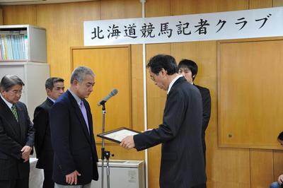 12月21日(月)、平成21年度のホッカイドウ競馬を盛り上げた競走馬や関係者の功績を称える『北海道記者クラブ表彰式』が、北海道庁会議室で行われ、受賞者には賞状や記念品が北海道競馬記者クラブから贈呈されました。