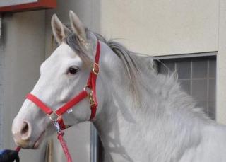 現在は、父ハクホウクン(セン16 白毛)とともに千葉県の乗馬施設インターアクションライディングク