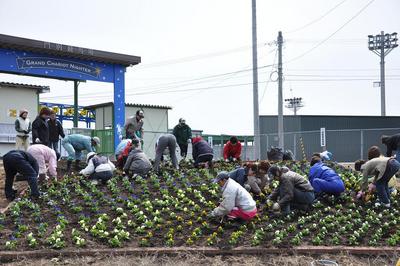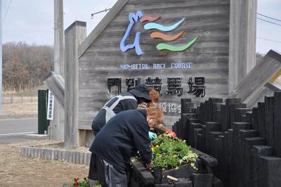 4月28日(水)、ホッカイドウ競馬開幕にむけて、門別競馬場入場門と国道沿いの2ヶ所の花壇で植え込み作業が本日(19日)行われました。