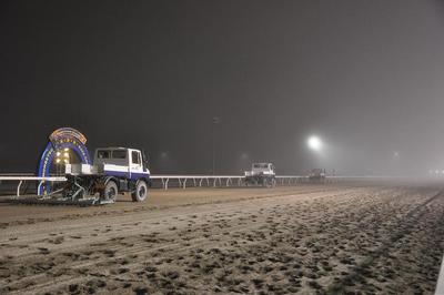 体験乗車者は、ウニモグ(馬場整備用車両の名称)に乗車し、向こう上面から見るスタンドの風景などの景色を堪能し、本場馬場内を周回しました。