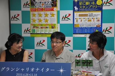 札幌国際大学 大月隆寛教授と学生が門別競馬場に来場 2010.09.09 第9レースのパドック解説に札幌国際大学大月隆寛教授がゲストとして出演。課外学習の経緯、注目馬・ジョッキーなどについて話していただきました。 昨年に引き続き来場した札幌国際大学の学生40名は、集中講義の課外学習の一環として、競馬観戦やとねっこジンギスカンなどグランシャリオナイターを満喫した様子でした。 これからも、団体でのご来場をお待ちしております。