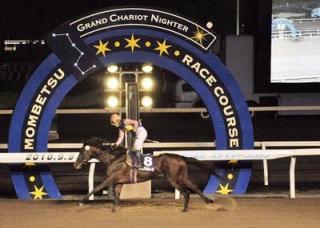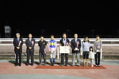 9月9日(木)、門別競馬場では、2600m伝統の一戦、農林水産大臣賞典第54回ステイヤーズカップ(H1)[ゼンノロブロイ賞]が行われ、服部茂史騎手騎乗のマキノスパーク号が2着コパノカチドキ号に7馬身差をつけて優勝しました(2.52.1)。