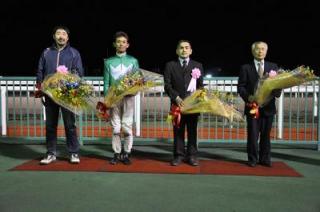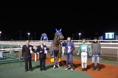 表彰式では、原口輝昭オーナー、角川秀樹調教師、齊藤正弘騎手、田川桐彦厩務員が出席し、ファンとともに同馬の功績を称えました。