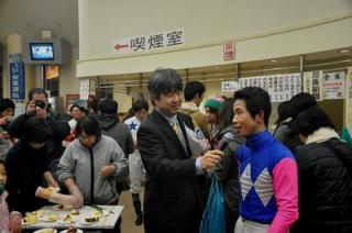 開門と同時に多くのお客様にご来場いただき、来場者先着プレゼント(石狩鍋・つぶ串&たこ串)のサービスのほか、競馬グッズが当たるファン感謝抽選会などを実施しました。