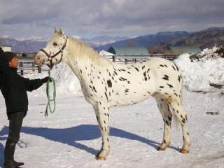 23年度ホッカイドウ競馬の誘導馬として、白毛にぶちのあるめずらしい馬【品種:アパルーサ】を社団法人北海道馬主会から寄贈を受けました。