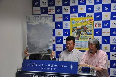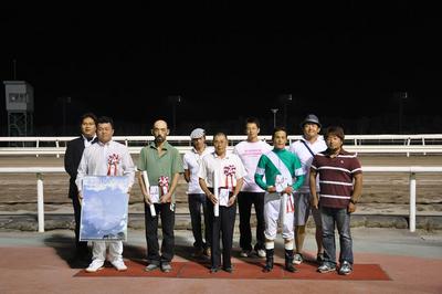 パドック解説のゲストに藤川 正仁氏 出演 2011.08.02 第9競走サイアーラインのパドック解説ゲストとして、静内軽種馬生産振興会青年部長 藤川正仁氏が出演し、サイアーラインポスターのPRや注目馬の1頭を紹介。レース終了後には、表彰式のプレゼンターを務めて頂きました。