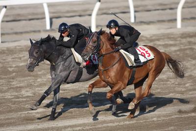写真上:追い切り(内 ステルミナート 外 マチカネカミカゼ)