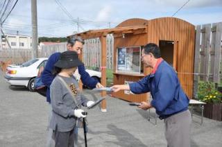 日高管内漁業協同組合長会協賛日高こんぶ特別 ファンサービス 2011.09.29 本日の第11競走、日高こんぶ特別競走協賛として、門別競馬場及び道内4場外発売所(Aiba札幌駅前、Aiba札幌中央、Aiba琴似、Aiba石狩)で日高昆布が合計500個プレゼントされました。 協賛:日高管内漁業協同組合長会 また、協賛競走の表彰式では、北海道漁業協同組合連合会日高支店長 阿部 陽一様より優勝馬ヴィクトリーリード号の関係者に副賞が贈られました。