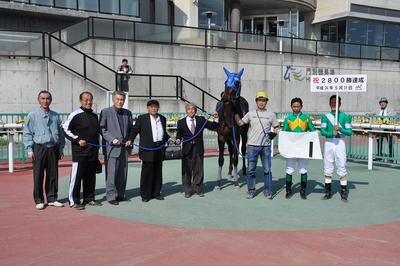 口取り写真では、川島 雅人騎手がプラカードを持ってくれました。なお、2,800勝達成の表彰式は、6月5日(火)にウイナーズサークルで実施予定です。