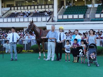 初めての芝挑戦だったので特に作戦は立てず、出たとこでの競馬。最後はけっこう寄ってきてくれたし、この馬の能力は見せてくれたと思います。父はバトルラインですが、母系は芝向きですからね。芝でもダートでも能力の高いところを見せてくれて楽しみが広がりました。この後はおそらく、エーデルワイス賞(JRA交流JpnⅢ、10月25日)に直行することになると思います。
