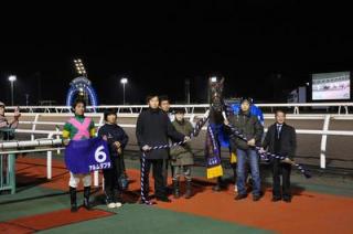 11月8日(木)、農林水産大臣賞典 道新スポーツ杯 第39回北海道2歳優駿(JpnⅢ)が行われ、幸 英明騎手騎乗のアルムダプタ号(JRA)が2着コスモコルデス号(JRA)に1馬身1/2差をつけて優勝しました(1.53.5)。