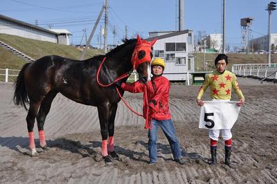 廣森 久雄調教師500勝達成 2013.05.08 5月8日(水)、門別競馬 第1Rでチェリーシャトル号が1着となり、管理する廣森 久雄調教師は、2,840出走で通算500勝(ホッカイドウ競馬では現役11人目 )を達成しました。 廣森 久雄調教師コメント 「今シーズンの序盤に区切りの500勝を達成出来てうれしく思います。いつもお世話になっているオーナー(馬主)はじめ、厩舎スタッフの頑張りのお陰です。これからも、しっかりと強い馬をつくっていけるよう頑張ります。」