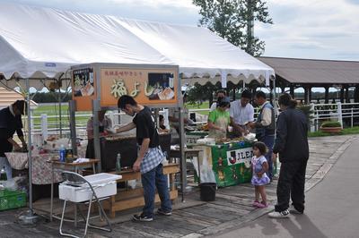 本日の門別競馬場では、全国的な知名度を誇る「元祖美唄やきとり福よし」が、昨年に引き続き臨時出店して頂き、限定800本の美唄やきとりが販売。そして、来場者先着100名様には、美唄やきとりが2本プレゼントされました。