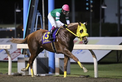 レースは、逃げるウィーゴー号(川崎)のすぐ後ろ2番手につけ、4コーナーに入ってからは、ウィーゴー号をかわすと後続にグイグイと差をつけて、2着ファーストキス号に5馬身差をつけて優勝しました(1.35.9)。