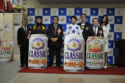 表彰式では、サッポロビール株式会社様より優勝馬の関係者に「サッポロクラシック」が副賞として贈呈されました。