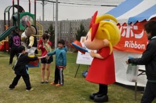 春のケイバまつり2日目の門別競馬場では、ウニモグ体験乗車(馬場整備車両)や坂路ウオークなどの各種体験型イベントのほか、ポッカサッポロリボンちゃんプレゼント抽選会、リボンちゃんと遊ぼう!ちびっこゲーム大会などが実施されました。こどもの日ということもあり、ちびっ子ゲーム大会は大いに人気を集めました。