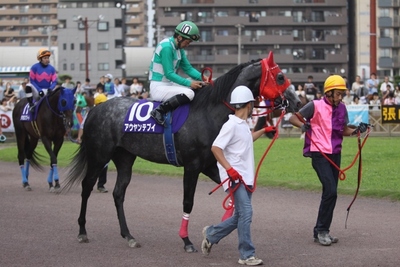 「心配していた輸送を何とかクリアしてくれて、体重もマイナス10キロなら想定の範囲内。良い状態で出走できました。スタートも決まったし、序盤から良い位置に付けられたんですけど、やはり経験の乏しい左回りですから、コーナーがねぇ・・。門別でも左回りの調教はしてきたんですが、対応しきれなかったですね・・。この後は、遠征ではなく、地元で頑張ってもらうことになると思います。そのうち、距離を延ばしてみる機会もあるかもしれませんね。応援していただき有難うございました」