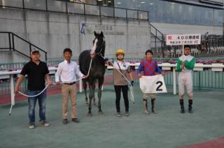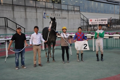 7月30日(水)、門別競馬 第8レースで松井伸也騎手(齋藤正弘厩舎)がリベリオン号に騎乗し、通算400勝を達成しました(ホッカイドウ競馬では現役13人目 )。