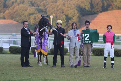 「ラストで能力の高さを見せてくれましたね。4コーナーで前の馬(8枠11番ネガティヴ)にぶつけられる格好になって一旦下がってしまったようで、『あれ?もう脚ないのかな?』と一瞬は思いましたが、最後またエンジン掛かって、地力を見せてくれました。この後、南関東(浦和・小久保智厩舎)に移籍することになっているんですけど、芝が合いますし、今日勝ってもまだ500万円以下の条件に出られるので、JRAの競馬場などでも頑張ってくれるんじゃないかと思います。」