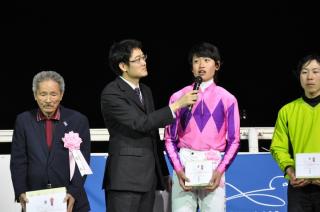 「ゲートもスムーズに出たので、前で競馬しました。道中は息も入り気持ち良く運べたと思います。最後の直線では後ろから来ているのがわかったので、必死に追いました。これからも楽しみな馬なので、応援よろしくお願い致します。」