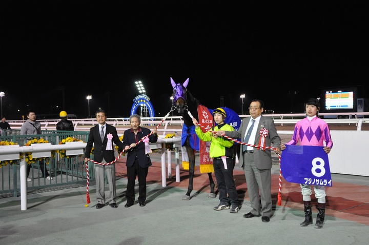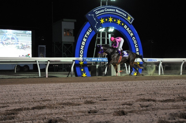 本日のメイン競走、DERBY WEEK 2015 STV杯 第43回 北海優駿(ダービー)【H1】(エイシンフラッシュ賞)[ダート2,000m(外) 曇・良]が行われ、5番人気フジノサムライ号が2着タイムビヨンド号に3/4馬身差をつけて優勝しました(タイム:2.11.9)。