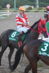 「雨で緩んだ馬場で道中ずっとノメってましたからね・・。きれいな馬場で走らせてあげたかったんですけど、仕方ないですね。直線はよく伸びてくれたんですけどね。この後は船橋の林正人厩舎に移籍します。」