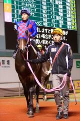 「後ろから行って終いを活かす競馬で、と話していたんですが、思いのほかスローになってしまって。1コーナーの手前から掛かってしまいましたから、ああなるとちょっと厳しいですね。それでも、勝ち馬以外とはそんな大きな差でもなかったですし、よく頑張ってくれたと思います。ウチの所属としては今回がラストで、この後は名古屋に移籍することになると思います。応援ありがとうございました」