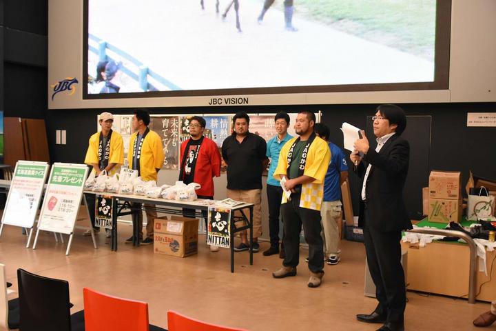 「日胆野菜セット&ホクレンゆめぴりかパックごはん」先着プレゼントでは、日胆地区の特産品とホクレンゆめぴりかパックごはんのセットが合計100名様にプレゼントされました。また、3回に分けて実施された「ホクレンじゃがいも・玉ねぎセット」が当たる!北海道農業クイズでは、岸根アナウンサー司会のもと日胆地区農協青年部協議会 会長の佐藤啓太さんにご解説いただき、会場が大いに盛り上がりました。
